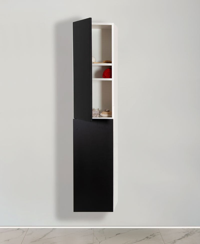 ADRIA model je dizajniran za kupatila koja odišu luksuzom i modernom energijom. Crno-bela kombinacija unosi elegantnu oštrinu u svaki prostor – crna boja stvara dramatičan efekat, dok bela donosi svetlost i ravnotežu. Donji deo je konzolni, a u kompletu se nalazi i praktična vertikala dostupna u dve varijante: sa žičanom korpom za veš ili sa policama.