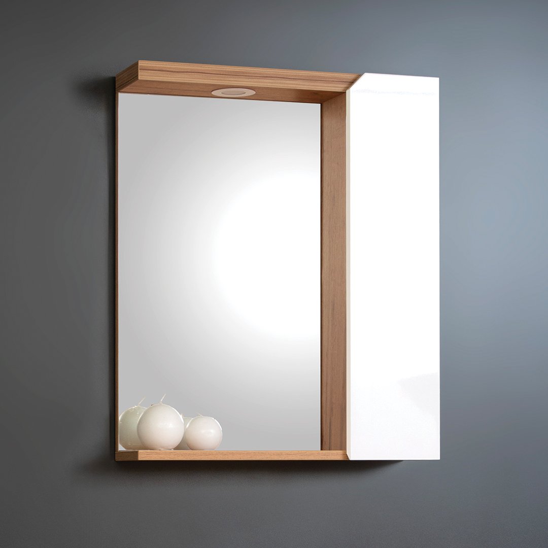 IRIS drvo modeli poseduju dosta praktičnog prostora za odlaganje i dostupni su u tri dimenzije: **60, 70 i 75 cm**. Izrađeni su u beloj boji i upotpunjeni dekorom teksture drveta u toploj nijansi. Kod donjeg dela prostor za odlaganje je odvojen sa dvoje ili troje vrata (u zavisnosti od širine elementa). Gornji deo sadrži ogledalo sa LED rasvetom i ormarić.
