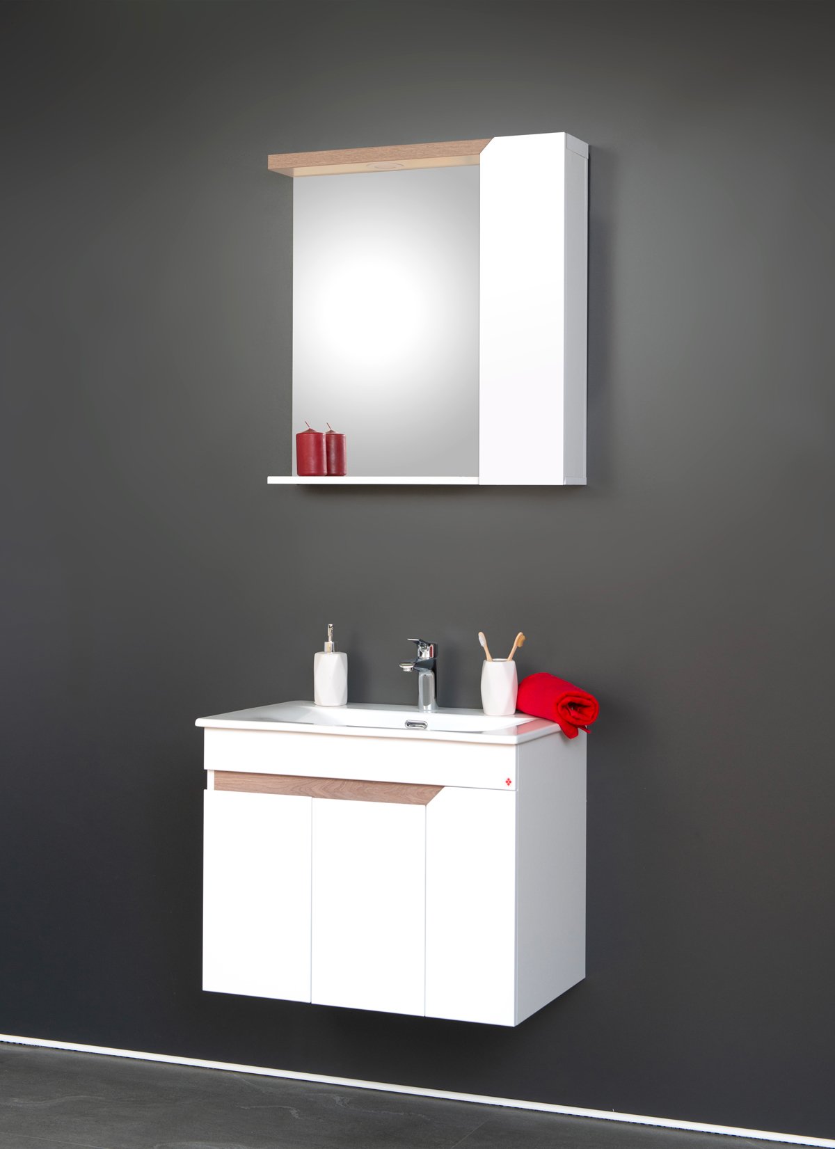 IRIS modeli poseduju dosta praktičnog prostora za odlaganje i dostupni su u nekoliko dimenzija i kombinacija boja i tekstura. Kod donjeg dela sa umivaonikom, prostor za odlaganje je odvojen sa dvoje ili troje vrata (u zavisnosti od širine elementa). Gornji deo sadrži ogledalo sa LED rasvetom i ormarić. Klasična bela boja dopunjena dekorom teksture drveta predstavlja odgovor na urbani stil uređenja prostora.