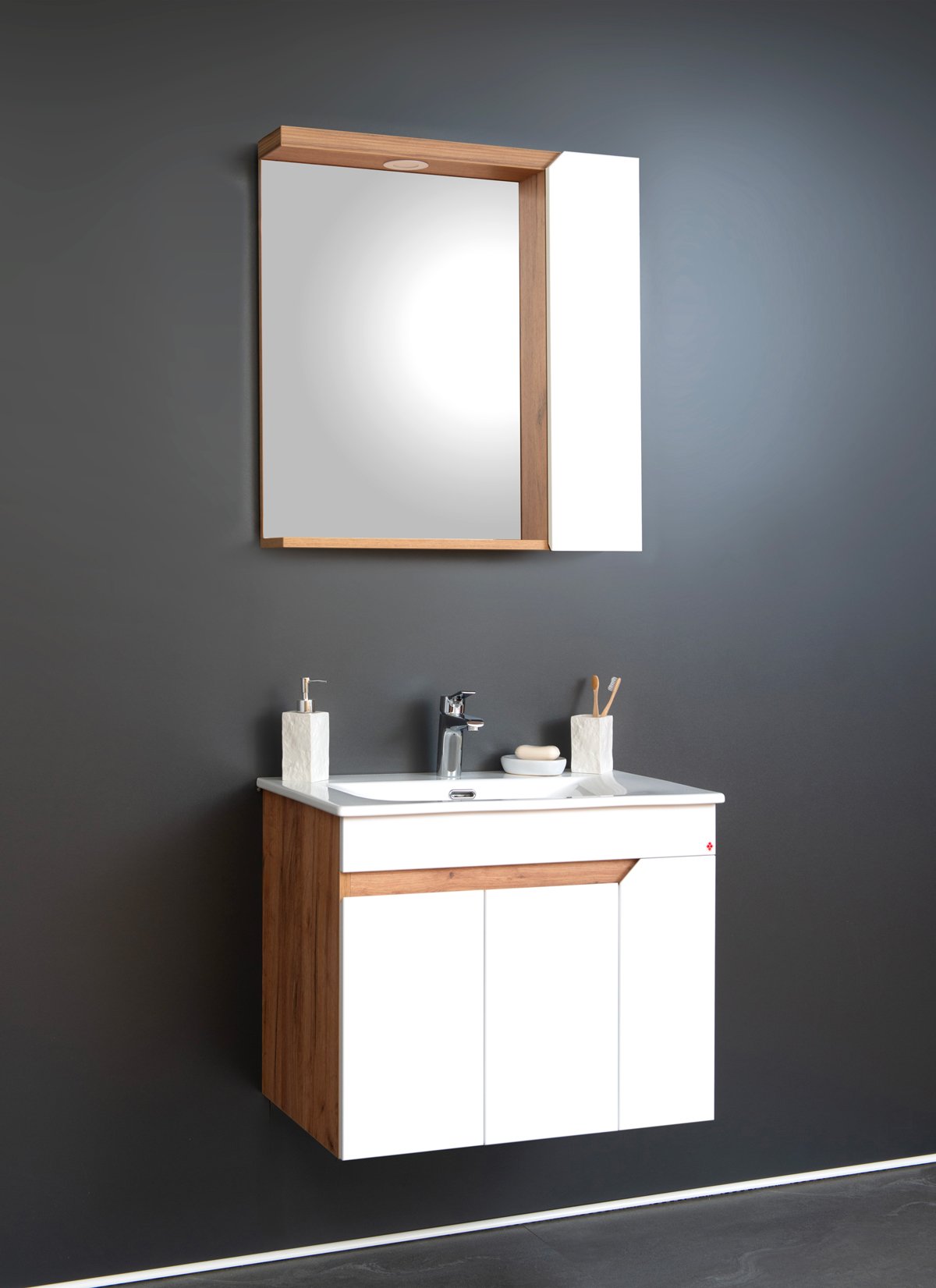 IRIS modeli poseduju dosta praktičnog prostora za odlaganje i dostupni su u nekoliko dimenzija i kombinacija boja/tekstura. Kod donjeg dela sa umivaonikom prostor za odlaganje je odvojen sa dvoje ili troje vrata (u zavisnosti od širine elementa). Gornji deo sadrži ogledalo sa LED rasvetom i ormarić. Klasična bela boja i bočne strane u teksturi drveta teksture drveta, savršeni su za svako moderno uređeno kupatilo.